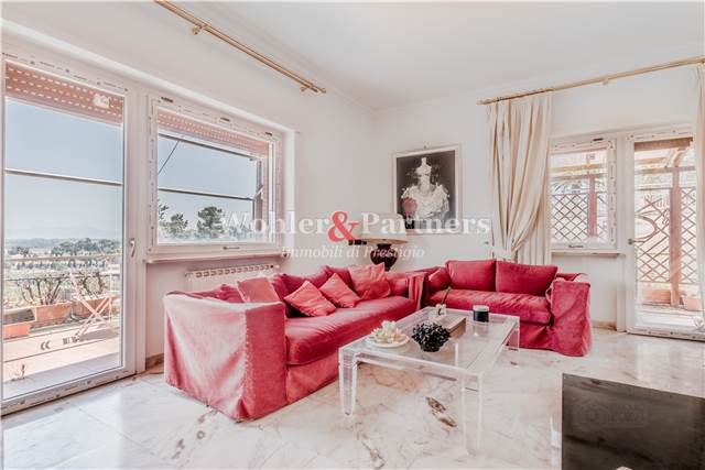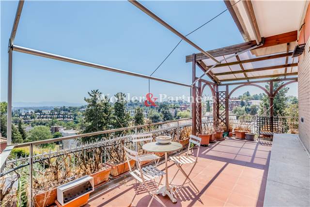 Intero piano panoramico luminoso con terrazzo perimetrale divisibile composto da doppio ingresso (sullo stesso pianerottolo) - salone doppio con camino - pranzo/studio o 4^ letto - 3 letto matrimoniali - 2 bagni - cucina - cameretta + bagno servizio - lavanderia.